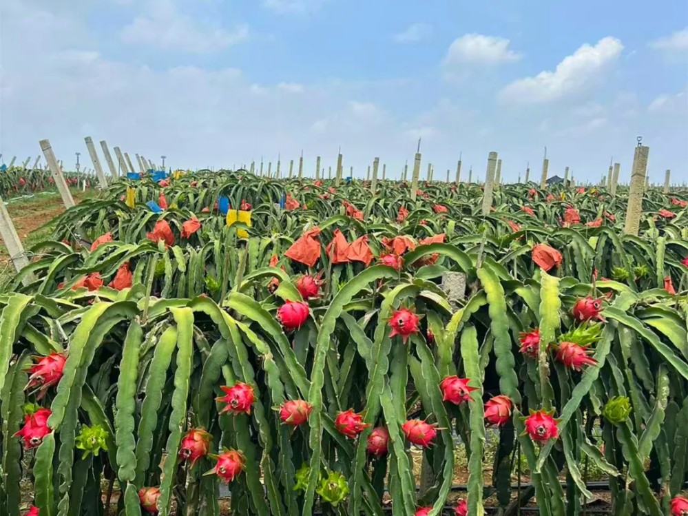 在金光農場公司的果園里,“金光一號”無刺紅心火龍果正迎來豐收季,6月份上市至今,累計產量223萬斤,產量相比去年同期增長60%,銷售收入同比增長近10%,產銷兩旺的背后離不開科技賦能的強勁支撐。