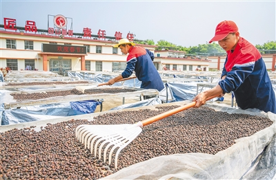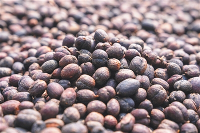 在產(chǎn)業(yè)園里,一粒粒飽滿紅色鮮果,經(jīng)過脫皮、脫膠、晾曬、脫殼等數(shù)道工序,脫去一身紅彩,經(jīng)歷高溫烘烤,釋放內(nèi)在香氣,蛻變成一顆顆優(yōu)質(zhì)的褐色咖啡豆。