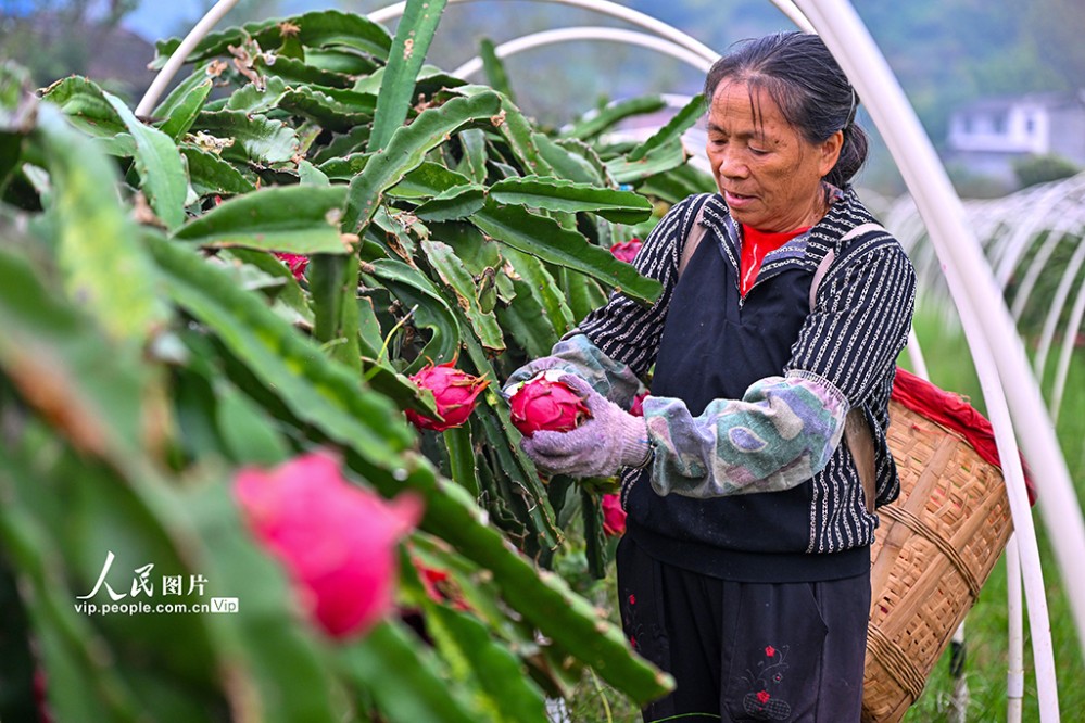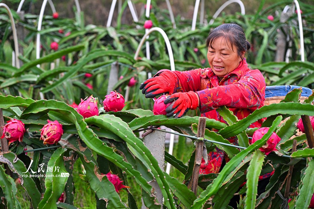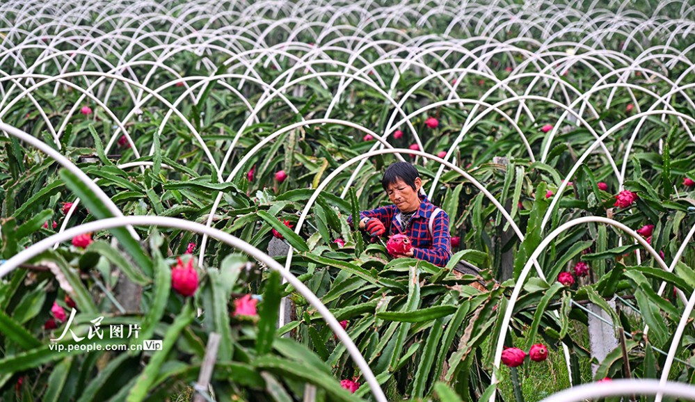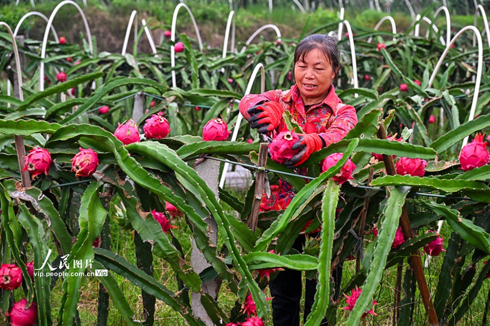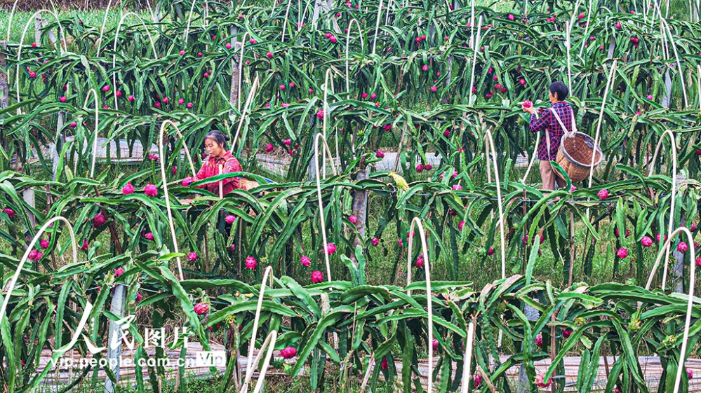 近年來,當(dāng)?shù)匾虻刂埔艘?guī)?;l(fā)展火龍果、櫻桃等特色水果產(chǎn)業(yè),助力土地增效,村民增收。潘帥攝(人民圖片網(wǎng))