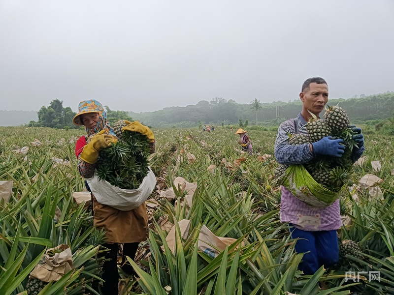 農(nóng)戶采摘成熟的菠蘿(央廣網(wǎng)記者 付美斌 攝)