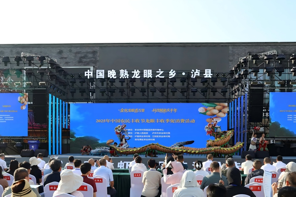 9月15日,由農(nóng)業(yè)農(nóng)村部南亞熱帶作物中心主辦,瀘縣人民政府、瀘州市農(nóng)業(yè)農(nóng)村局承辦的2025年中國農(nóng)民豐收節(jié)龍眼豐收季促消費活動在“中國晚熟龍眼之鄉(xiāng)”——四川瀘州市瀘縣成功舉辦。農(nóng)業(yè)農(nóng)村部農(nóng)墾局副局長、一級巡視員程景民,農(nóng)業(yè)農(nóng)村部南亞熱帶作物中心副主任黃輝,四川省農(nóng)業(yè)農(nóng)村廳二級巡視員周南華,瀘州市人民政府副市長葛洪亮,瀘州市人大常委會副主任、瀘縣縣委書記李仁軍等出席啟動儀式,龍眼種植大戶,龍眼科研專家學者,收購商、服務商及全產(chǎn)業(yè)鏈企業(yè)代表等200余人齊聚一堂,共慶龍眼喜獲豐收,共享龍眼甜蜜成果,共謀龍眼發(fā)展大計。同期還舉辦了全國龍眼產(chǎn)業(yè)學術研討活動及瀘縣第12屆龍眼龍蝦消費季活動。