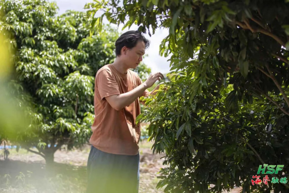 紅明農(nóng)場(chǎng)公司旗下海南荔海實(shí)業(yè)有限公司副總經(jīng)理李精華拿著手機(jī)和筆記本來到這里,一一觀察每株荔枝樹,記錄它們的生長(zhǎng)情況。
