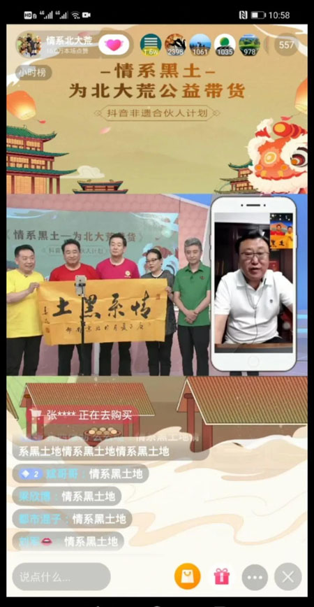 疫情暴發(fā)后,北大荒牽動著無數(shù)知青的心。為助力復(fù)工復(fù)產(chǎn)后北大荒企業(yè)發(fā)展,姜昆公益基金會發(fā)起了這場公益直播帶貨活動,并得到了央視、抖音官方、惠買集團(tuán)、北京星合匯文化發(fā)展有限公司的大力支持。