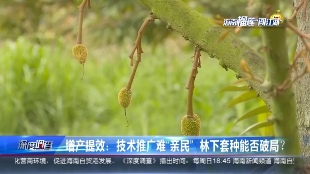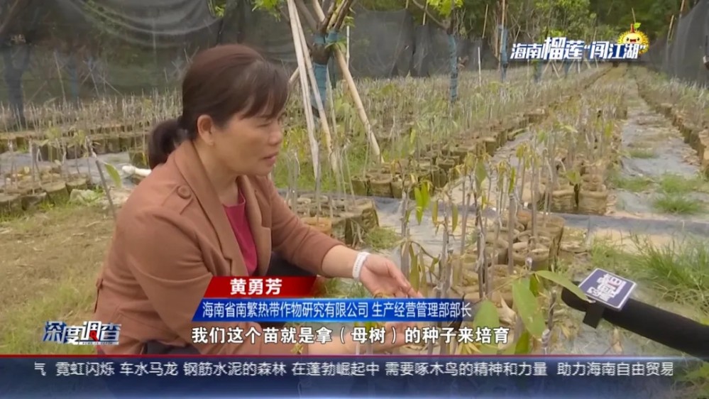 海南省南繁熱帶作物研究有限公司 生產(chǎn)經(jīng)營管理部部長 黃勇芳:我們這個(gè)苗就是拿這棵母樹的種子來培育,然后拿黑刺榴蓮的苗來嫁接,產(chǎn)量也是跟著比較高。