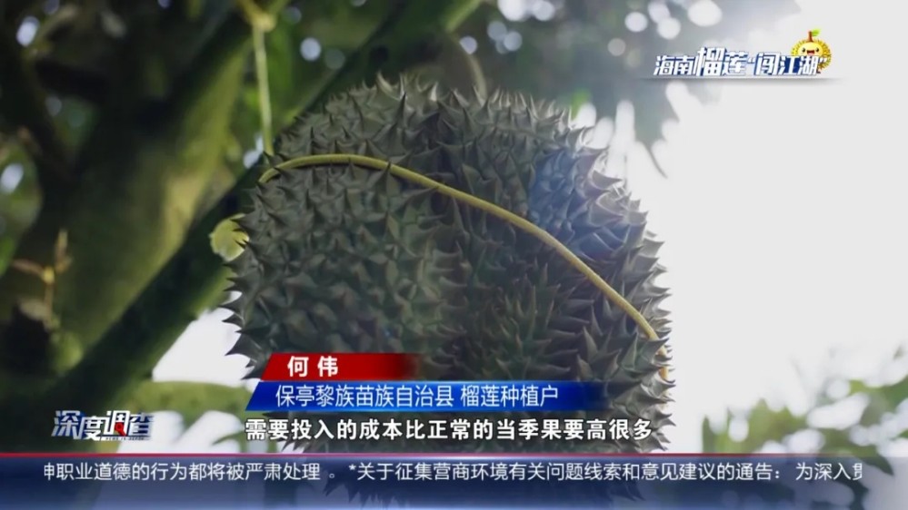 保亭黎族苗族自治縣 榴蓮種植戶 何偉:需要投入成本要比正常的當(dāng)季果要高很多,甜度怎么樣,口感怎么樣,這些還是一步步有待驗(yàn)證。
